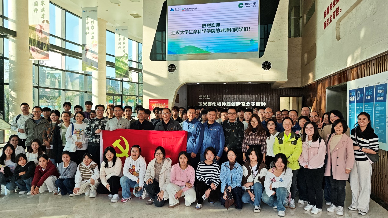 为推动生物育种领域产教融合,促进生物育种技术专业更好发展,我院植物科学系党支部于10月23日下午组织全系教师和2025级生物育种技术专业新生,前往光谷生物城两家生物育种高新技术企业开展参观学习与支部共建活动,院长曾长立和支部14名党员共同参加了此次活动。
