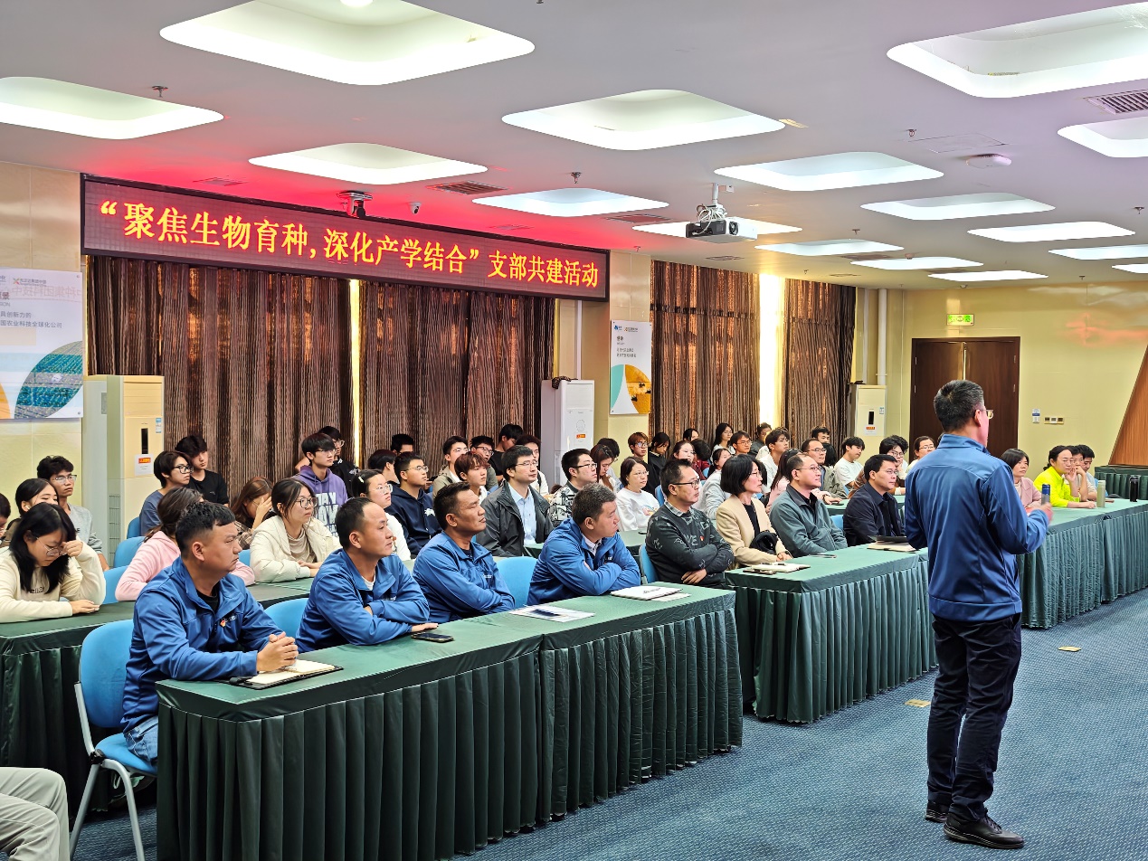 随后,师生一行前往中国种子集团生命科学技术中心,与该中心第二党支部联合开展了以“聚焦生物育种,深化产学合作”为主题的共建活动,两个支部的党员与师生齐聚一堂。该中心运营部总监兼玉米等农作物全国重点实验室副主任陈超博士介绍了公司情况。曾长立院长在介绍学院情况及生物育种技术专业时指出,“种子是农业的芯片,关乎国家粮食安全与农业现代化,生物育种是双方都关注的重点。此次活动为未来合作打下基础,希望未来双方在人才培养、科研攻关等方面加强交流与合作”。