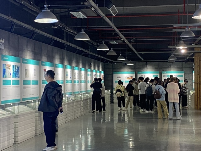 在互动体验区,巨大的数字沙盘成为参观焦点。新生们围站在沙盘旁,随着工作人员的操作,光谷生物城生物产业产业链图谱缓缓展开:从上游的生物试剂研发,到中游的药物生产,再到下游的医疗服务,一条完整的生物产业生态链清晰呈现。“原来我们学习的生物化学、微生物学知识,都能在产业链中找到对应应用场景!”参观过程中,新生们结合课堂所学积极提问,工作人员不仅耐心解答疑问,还分享了生物科技行业的发展趋势。