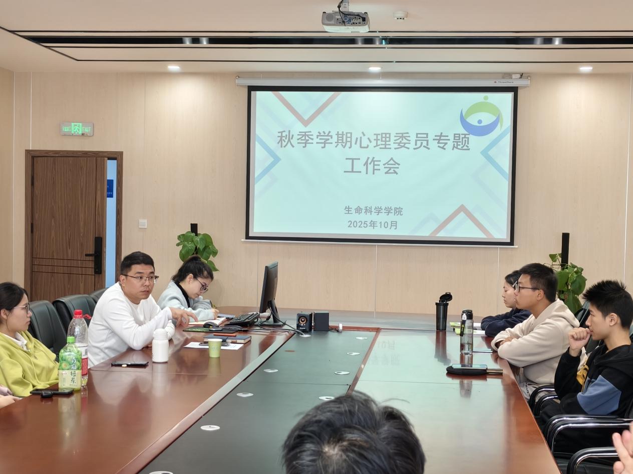 为进一步强化学院心理健康教育工作队伍建设,全面提升心理委员的履职能力与责任意识,10 月28 日中午,生命科学学院在 J16C201会议室组织开展 2025 年秋季学期心理委员专题工作会。学院党委副书记王配才、心理辅导员万星宇、助理辅导员石晓宇及全院心理委员参与会议。
