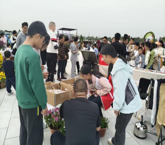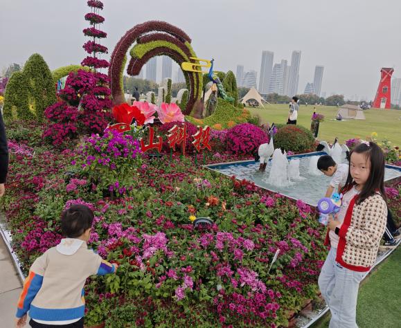 分发打开礼品时,他们是秋日里“温暖的信使”。当带着晨露的新鲜菊花被递到游客手中,志愿者们会笑着送上一句“祝您秋日愉快”。接过鲜花的老人眉眼舒展,孩童欢呼雀跃,年轻人则开心地举起花束与菊海合影——这份小小的礼物,不仅是对游客的问候,更成了连接陌生人之间善意的纽带,让温暖在彼此心间流转。