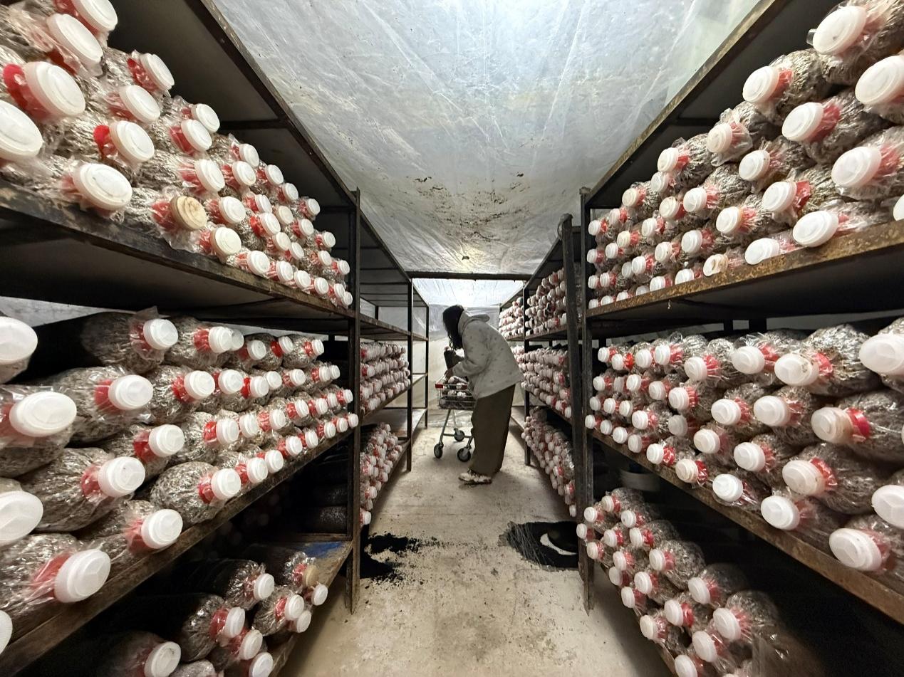 从菌种接种到菌菇采收,学生们全程参与菌菇培育的 “生命全周期”。他们定期观察菌包的菌丝生长情况,根据菌菇生长阶段调整养护策略。“看着菌丝从稀疏到茂密,这种成长的获得感太真切了。”