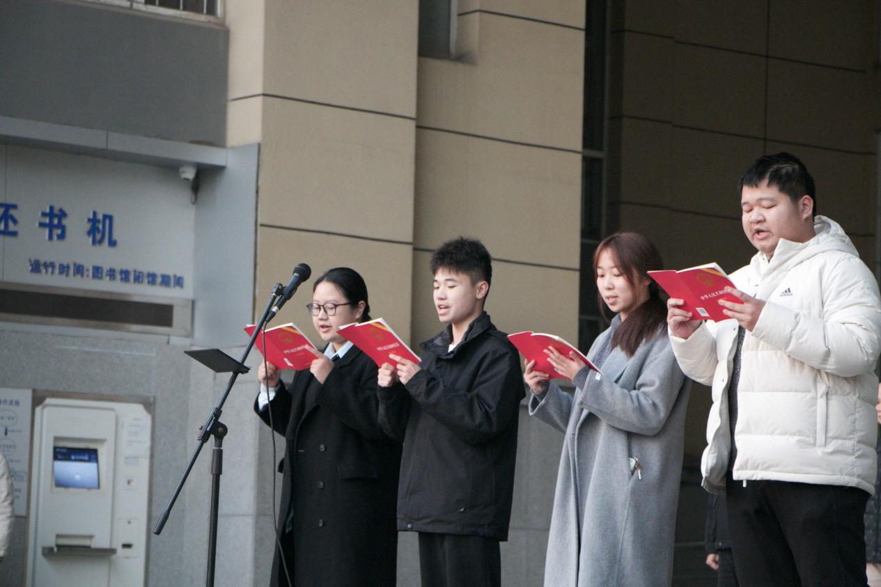 结合年末四六级考试及期末考试在即的实际情况,学院党委书记刘妙龄强调,宪法精神并非遥不可及,课堂上的自律自觉、考场上的诚信应考,都是法治信仰在日常学习生活中的具体践行。她向全体学子提出四点希望:一是尊崇法律,做心存敬畏、行有所止的 “明白人”;二是学习法律,做知法懂法、明辨是非的 “内行人”;三是遵守法律,做严于律己、恪守底线的 “规矩人”;四是善用法律,做依法维权、坚守正义的 “勇敢人”。