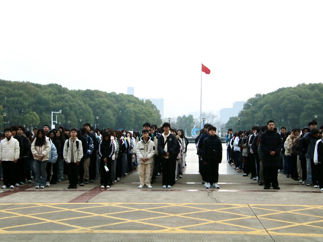 晨光熹微,初心如炬。仪式伊始,国旗仪仗队迈着整齐划一的步伐,昂首阔步走向升旗台,身姿挺拔、精神抖擞,每一步都彰显着青年学子的昂扬风貌。全体师生肃立静候,目光聚焦于冉冉升起的五星红旗,激昂的《义勇军进行曲》响彻英才广场,歌声里饱含着对祖国的赤诚热爱,也寄托着生科学子践行志愿精神、勇担时代使命的坚定信念。
