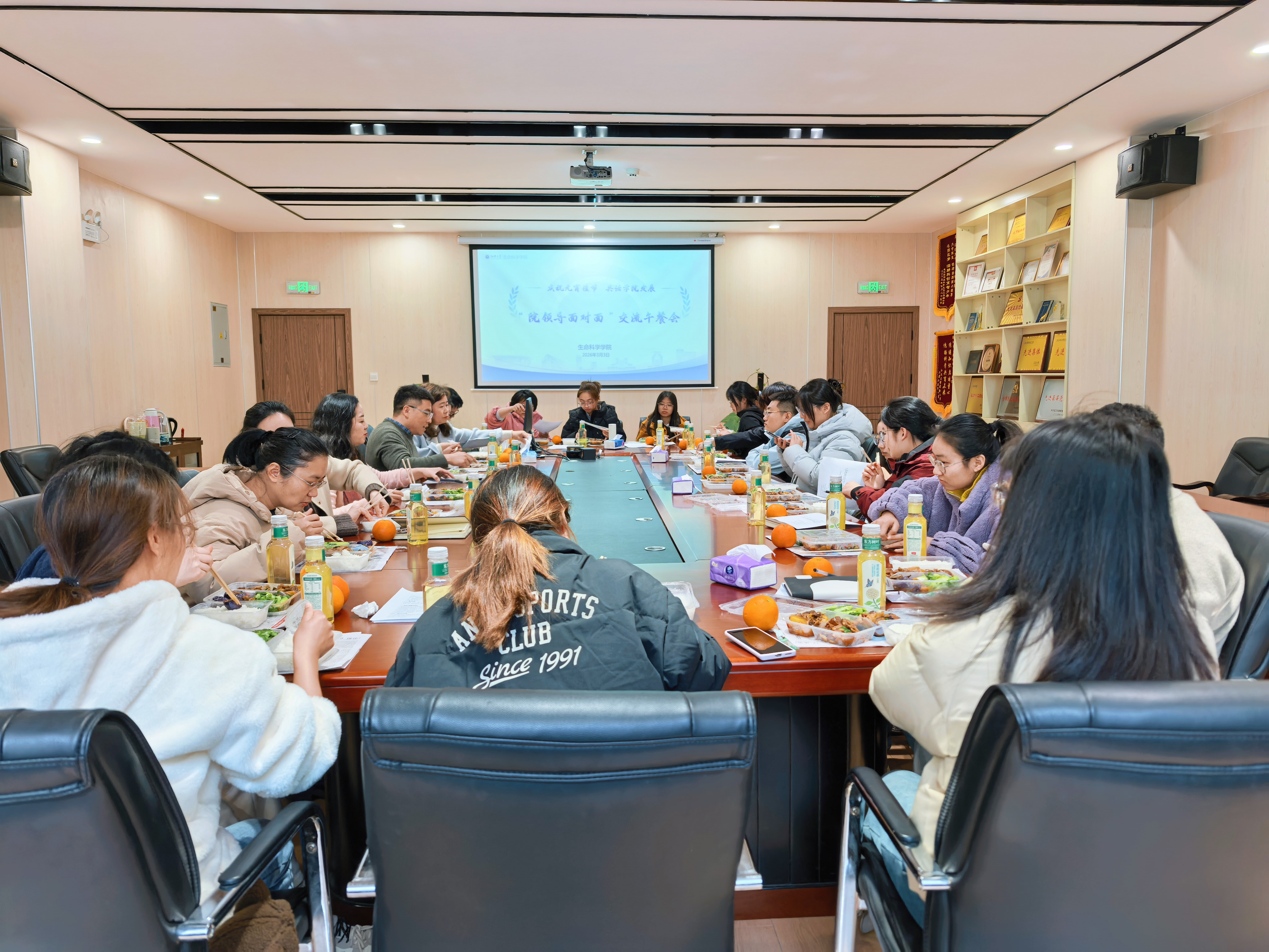 为搭建师生零距离沟通桥梁,倾听学生心声、回应学生诉求,切实提升同学们的归属感、参与感和获得感,扎实推进立德树人根本任务,春季开学第一周,生命科学学院“院领导面对面”交流午餐会在J16C201会议室温馨举行。学院党委书记刘妙龄、党委副书记王配才、教学办负责人吴春红、研究生辅导员吕方舟、本科生辅导员谭英,与本科各年级学生代表以及研究生代表齐聚一堂,围坐畅谈,在热气腾腾的午餐氛围中拉近距离、共话成长、共谋发展。