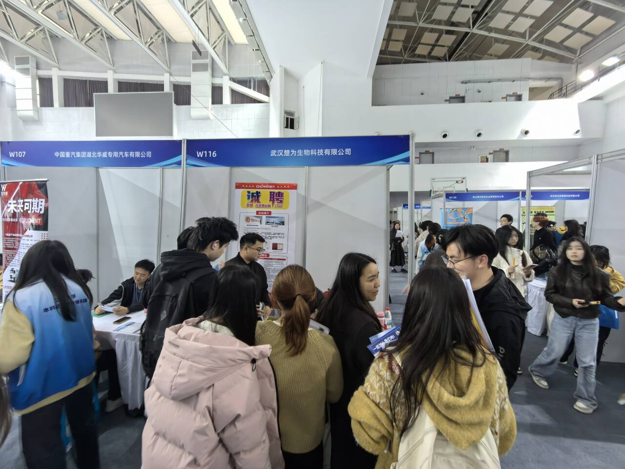 从参会单位来看,本次招聘会吸引了众多与生命科学学院专业高度匹配的优质企业,涵盖生物医药、健康医疗、现代农业等多个领域。现场可以看到九州通医药集团、健民药业集团、武汉赛维尔生物科技等知名企业展位前人头攒动,同学们纷纷就岗位职责、科研方向、发展前景等问题与企业招聘人员深入交流。此外,多家医院及生物技术类企业也吸引了大量生物相关专业毕业生的关注。