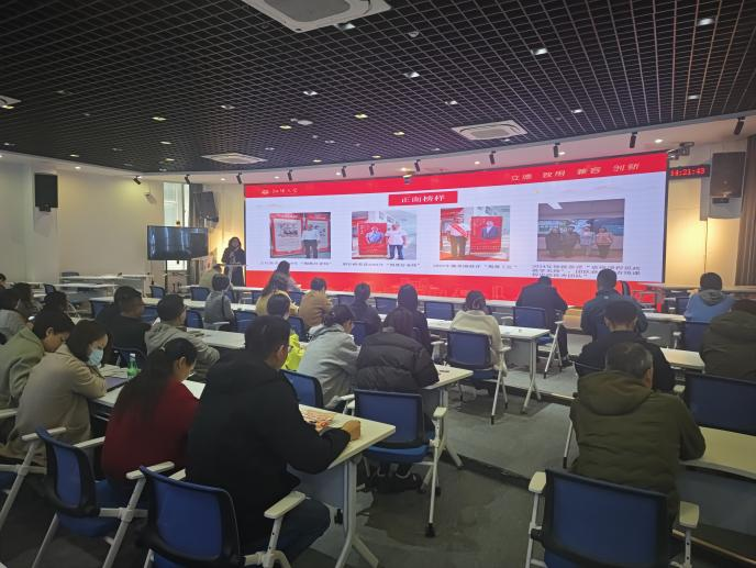 在学习中,刘妙龄书记结合正面榜样和反面典型开展。学院一直注重师德师风建设,近年来涌现出一批师德师风先进典型--荆楚好老师王红波和胡长峰、荆楚工匠戴希刚、省级课程思政教学名师徐媛及其团队,并通报校内近年来违纪违规典型案例,希望广大教职工以榜样为引领、以案例敲警钟。